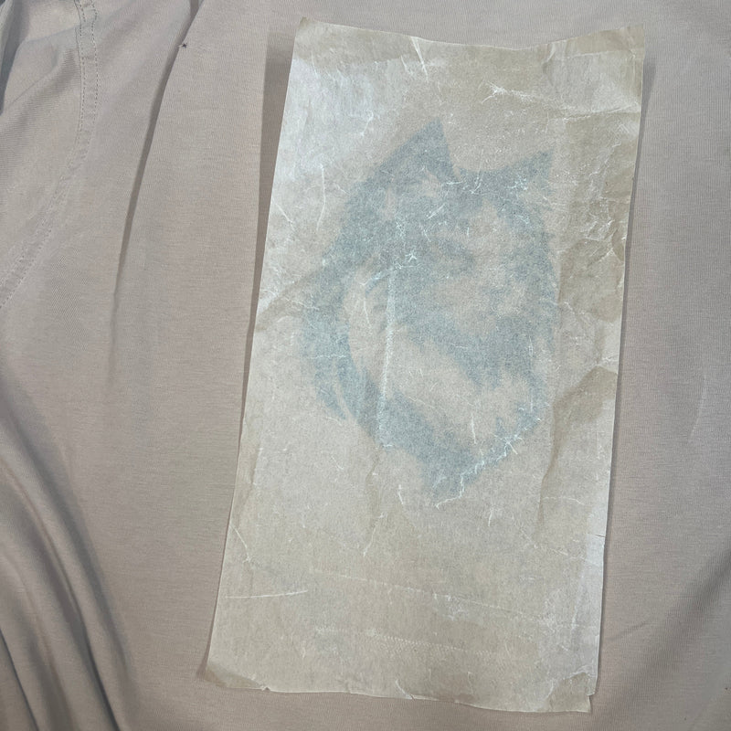 Nakonec tričko obrátíme naruby, vložíme papír na pečení mezi obrázek a druhou stranu trička, vyrovnáme a po dobu cca 30s přežehlíme obrázek z rubové strany.