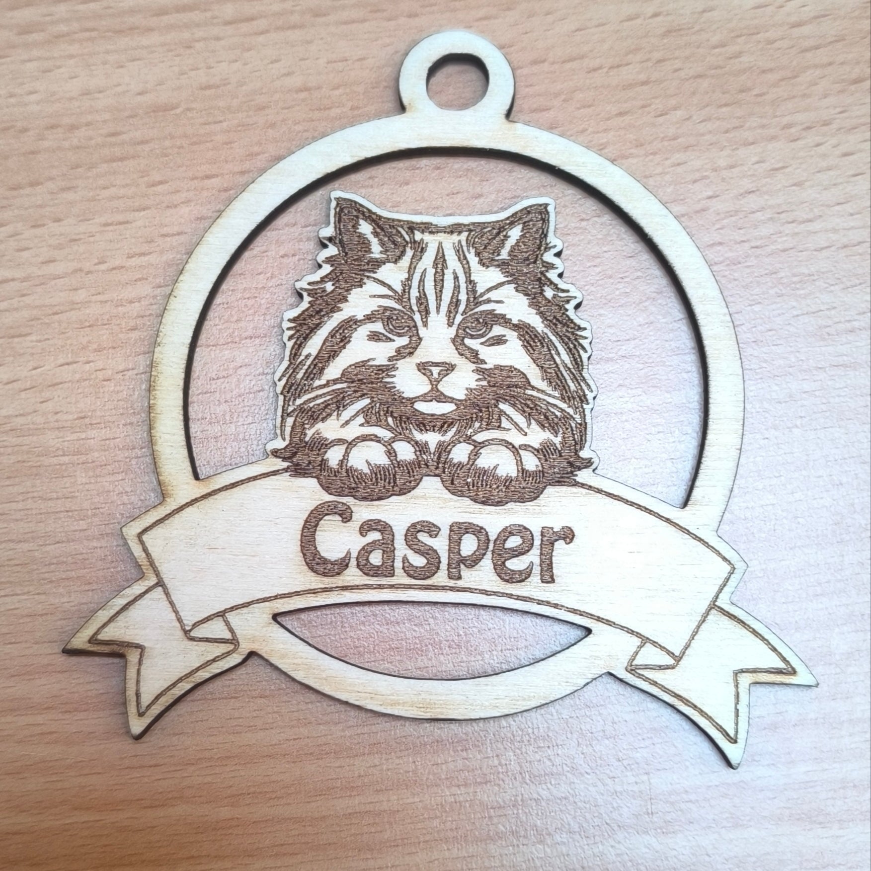 Udělejte Vánoce ještě osobnější! Tato jedinečná dřevěná ozdoba je vyrobena přesně podle vašich představ – s motivem vašeho mazlíčka a jeho jménem.