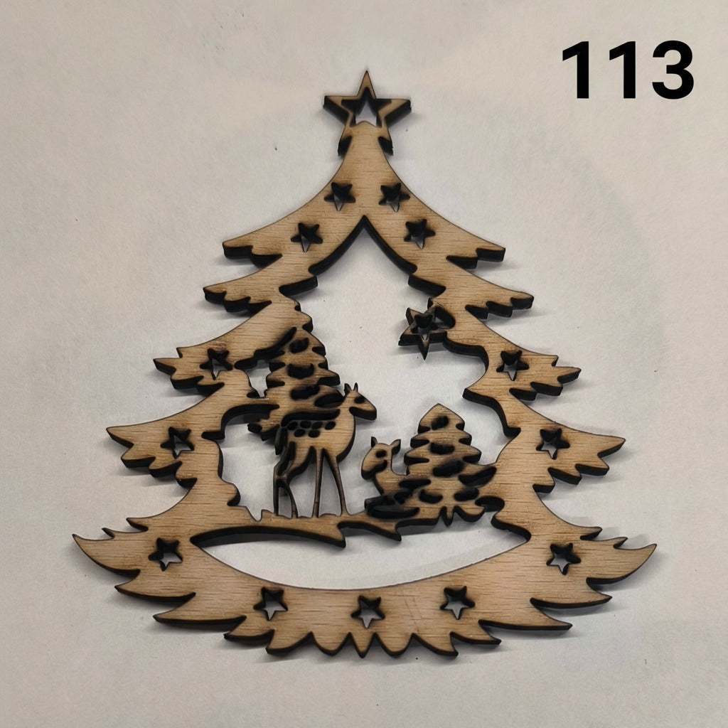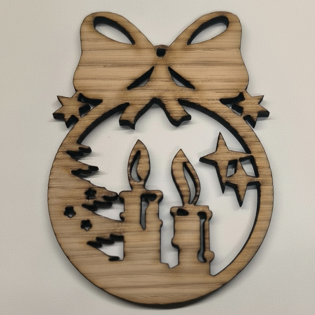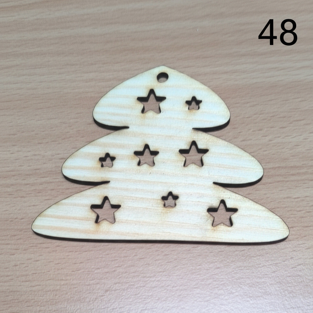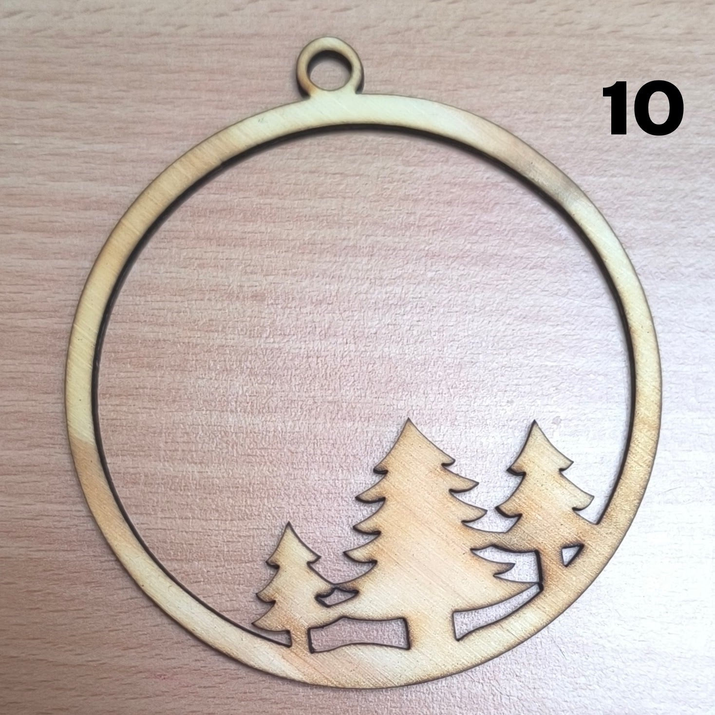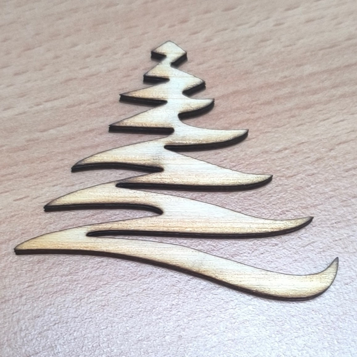 Vánoční ozdoby vyřezávané z dřevěné překližky.