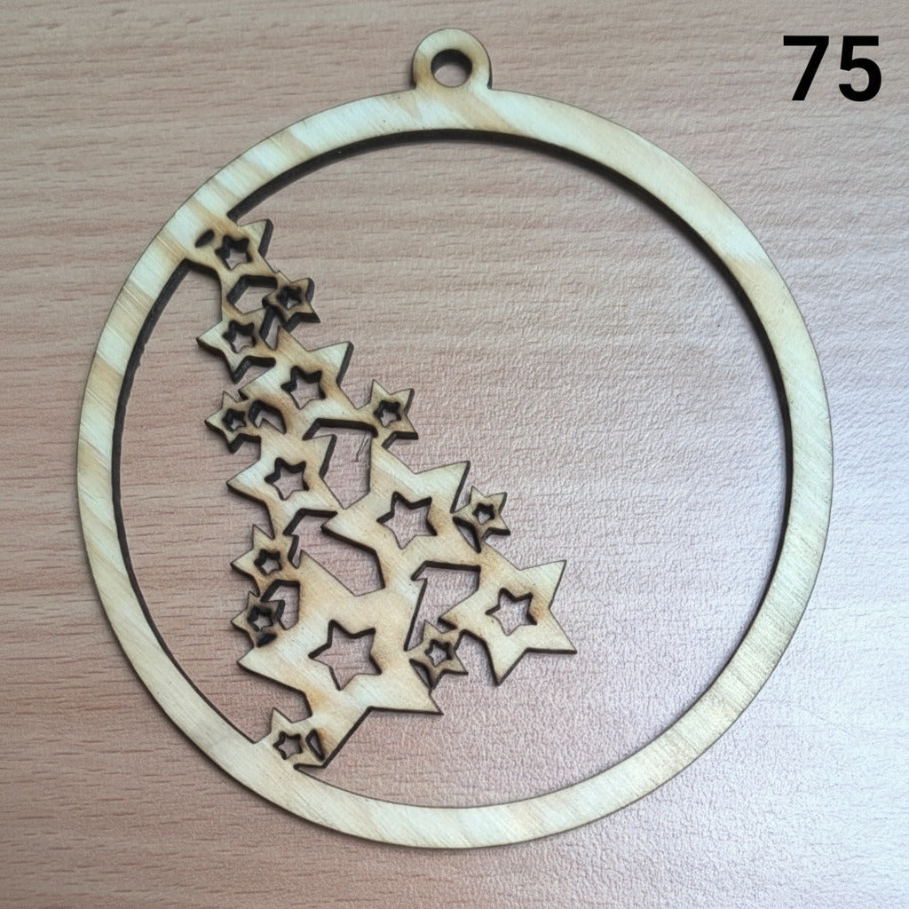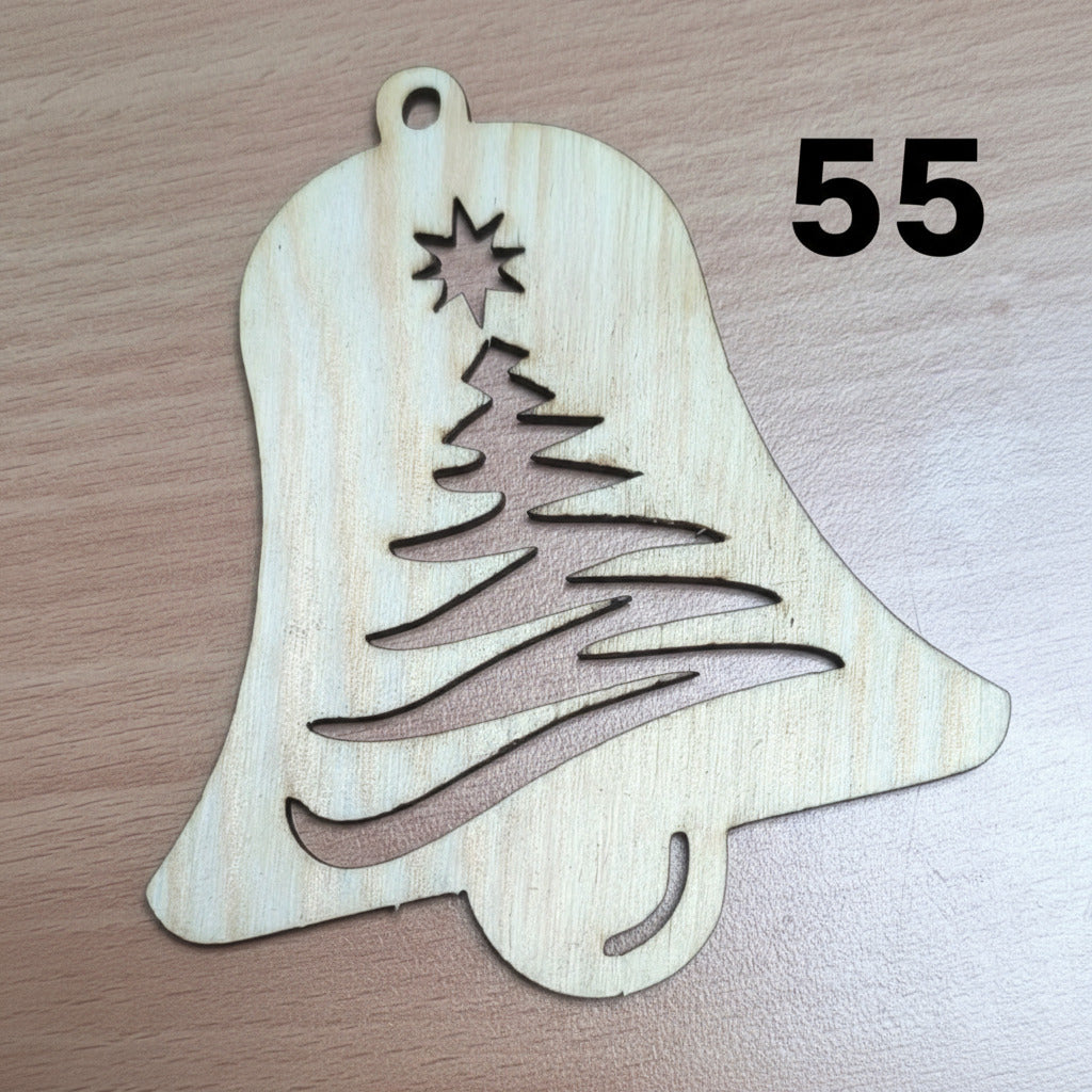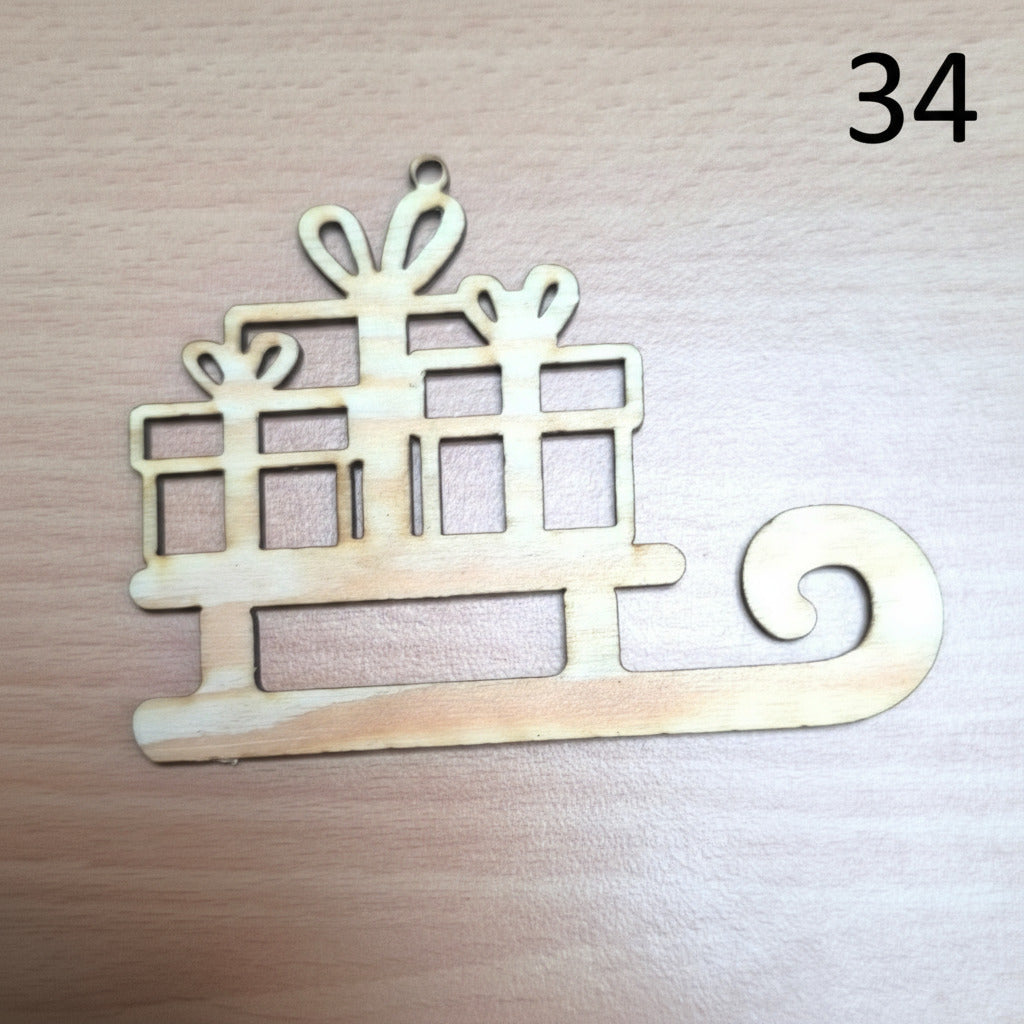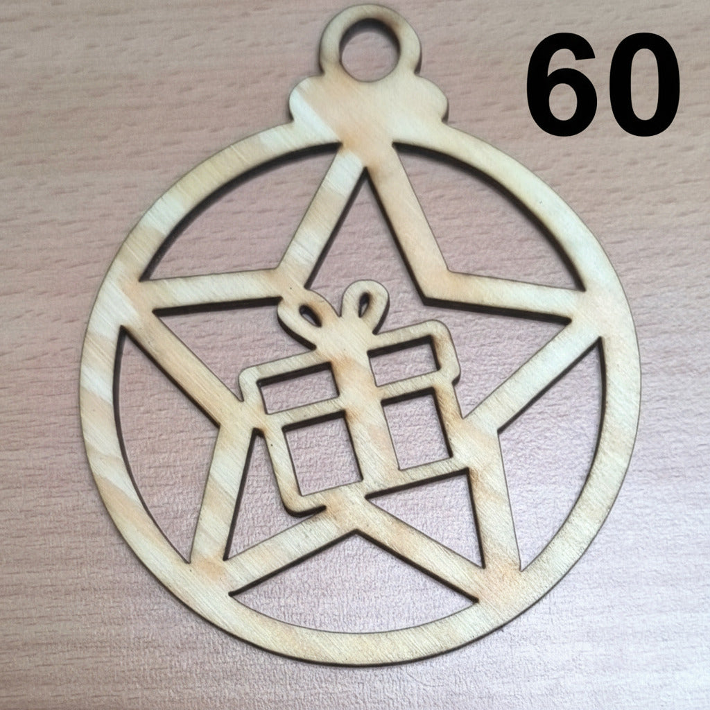 Vánoční ozdoby vyřezávané z dřevěné překližky.
