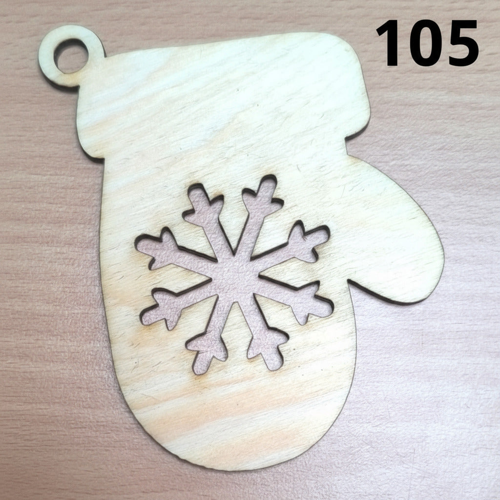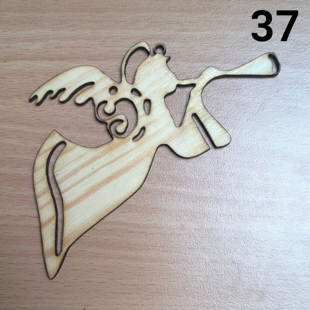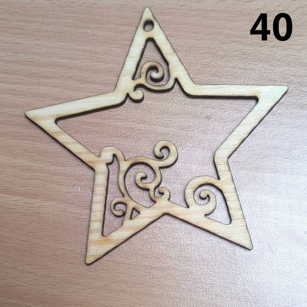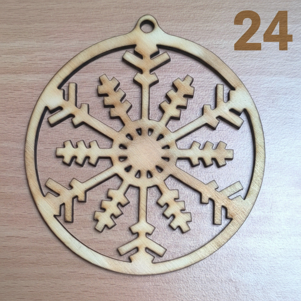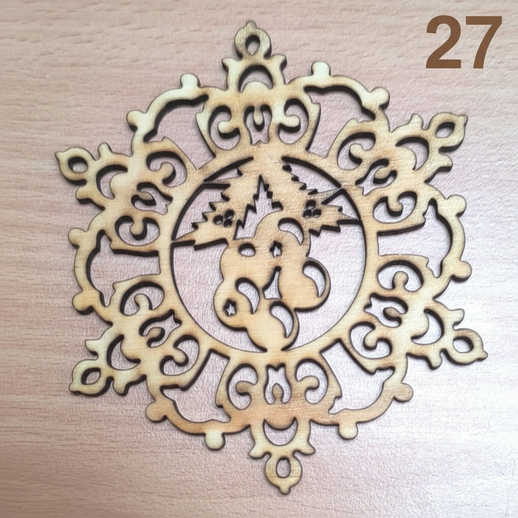 Vánoční ozdoby vyřezávané z dřevěné překližky.